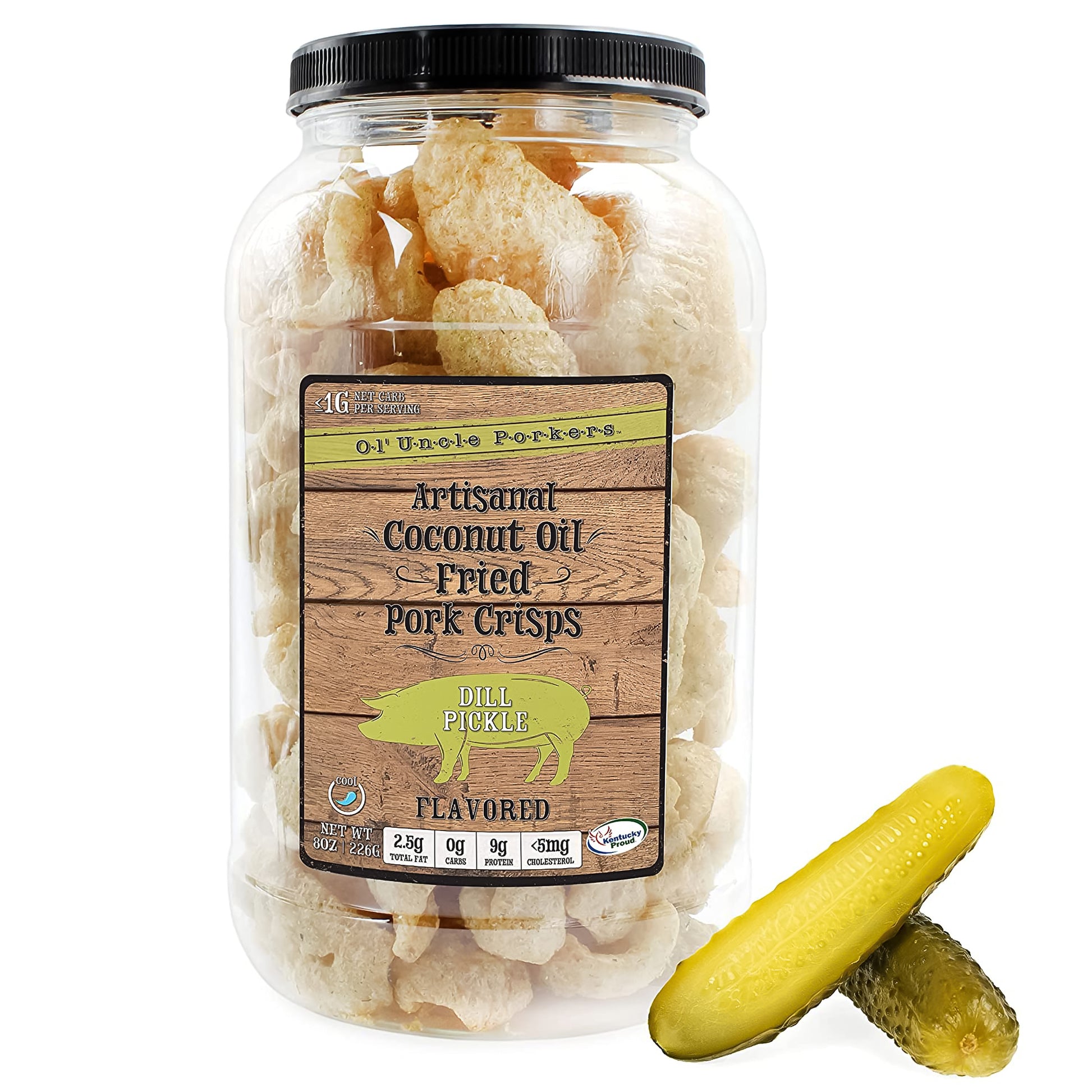 Ol' Uncle Porkers Keto-Friendly Dill Pickle Flavor Flavored Pork Rinds, Keto-Approved Chicharrones Treat